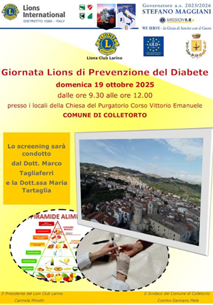 Giornata Lions di prevenzione del diabete: screening gratuito a Colletorto